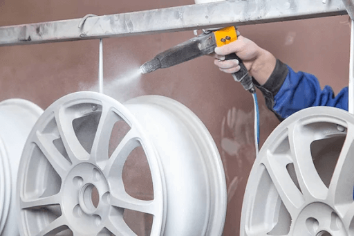 2. The powder is sprayed onto the part using an electrostatic spray gun. The gun charges the powder so that it gets attracted to the surface.